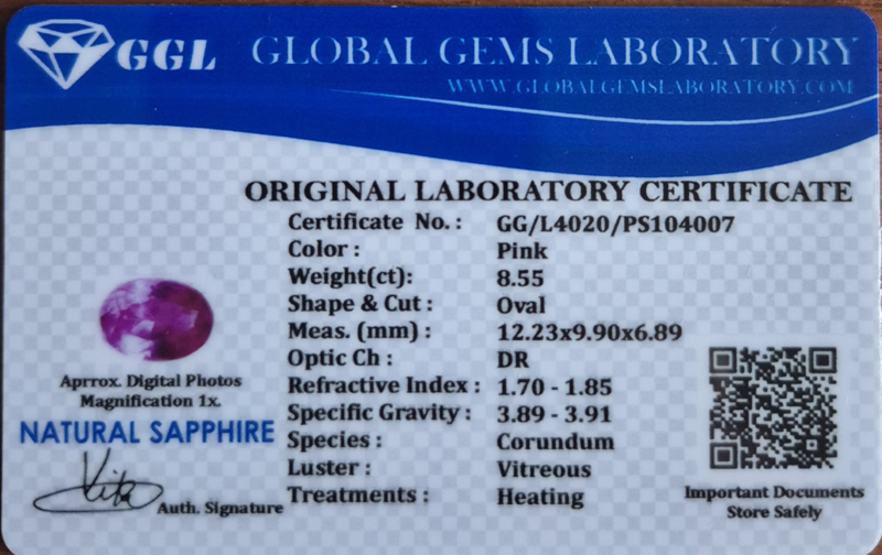 Roze facetgeslepen Saffier 8,55 ct met GGL certificaat verkocht